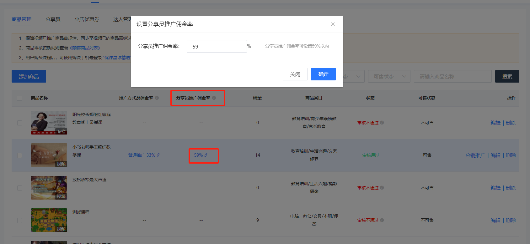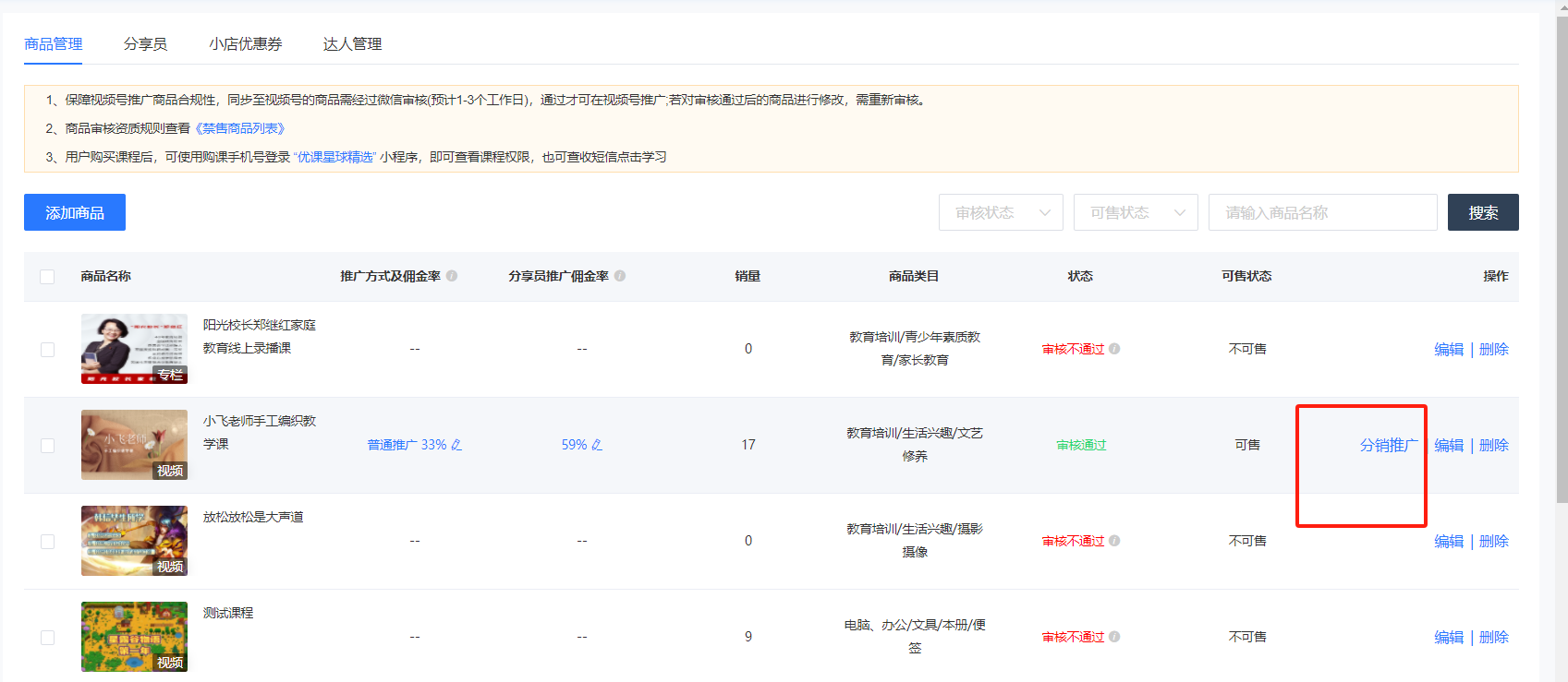 优课星球小店的分销推广分为两种,达人推广和分享员推广;